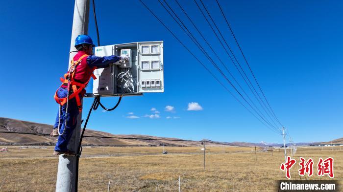 10月17日,在青海省海北藏族自治州剛察縣果洛藏貢麻村,久邁多杰檢查牧民戶(hù)表運(yùn)行情況。中新社記者 薛蒂 攝