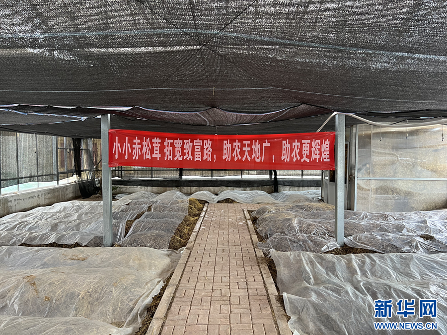 隆亞村高原有機(jī)赤松茸種植大棚一角。新華網(wǎng) 魚昊 攝
