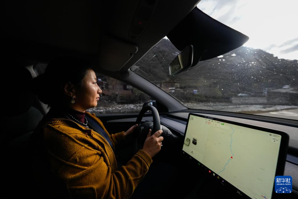 達(dá)瓦卓瑪開(kāi)車去附近的郵政物流快遞服務(wù)站郵寄貨品(11月4日攝)。新華社記者 沈伯韓 攝