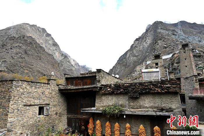 25日,桃坪羌寨內(nèi)的居民正在聊天。中新社記者 安源 攝