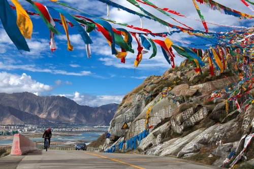 在西藏,從山到水,從建筑到自然,只要有風(fēng)到達(dá)的地方,就會(huì)有經(jīng)幡飄動(dòng)的身影。藍(lán)天與白云,火焰與碧水,飄蕩在黃色大地上,伴隨著流云,講述著生活在這片雪域高原的百姓們對當(dāng)下的熱愛,對未來的企盼。而旅行者們,也總喜歡在這些飛揚(yáng)的經(jīng)幡邊駐足,合掌祈福,讓五彩經(jīng)幡傳遞心中美好的祝福與真摯的希望。