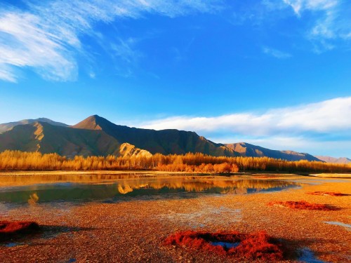 廣袤、高遠(yuǎn),這是許多人對西藏的第一印象。然而,在達(dá)孜,有一塊土地,卻有著煙雨江南的繾綣與綺麗。她就是金色池塘。