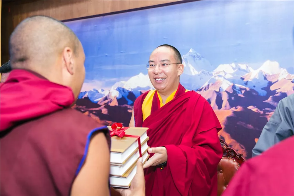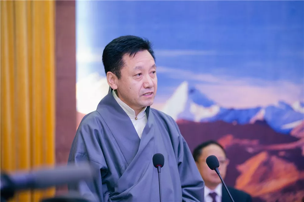 十一世班禪在致辭中指出,歷世班禪是藏傳佛教愛國愛教的一面旗幟。傳承和弘揚(yáng)歷世班禪大師愛國愛教思想,對于推動藏傳佛教再弘期更好地與中國特色社會主義相適應(yīng),推動藏傳佛教更好地為維護(hù)國家統(tǒng)一,促進(jìn)中華民族團(tuán)結(jié),維護(hù)社會和諧穩(wěn)定服務(wù),具有非常重要的作用。《歷世班禪文集》歷史意義深遠(yuǎn)。以書刊為媒介符合時(shí)代潮流,能夠讓廣大的信教群眾,宗教界專家學(xué)者,特別是年輕一代更便捷,更系統(tǒng)學(xué)習(xí)歷世班禪愛國愛教思想的精髓。他希望藏傳佛教界人士,要以藏傳佛教歷代愛國愛教先賢大德為榜樣,感恩黨,感恩祖國,努力聞思顯密精要,為眾生帶來利樂。