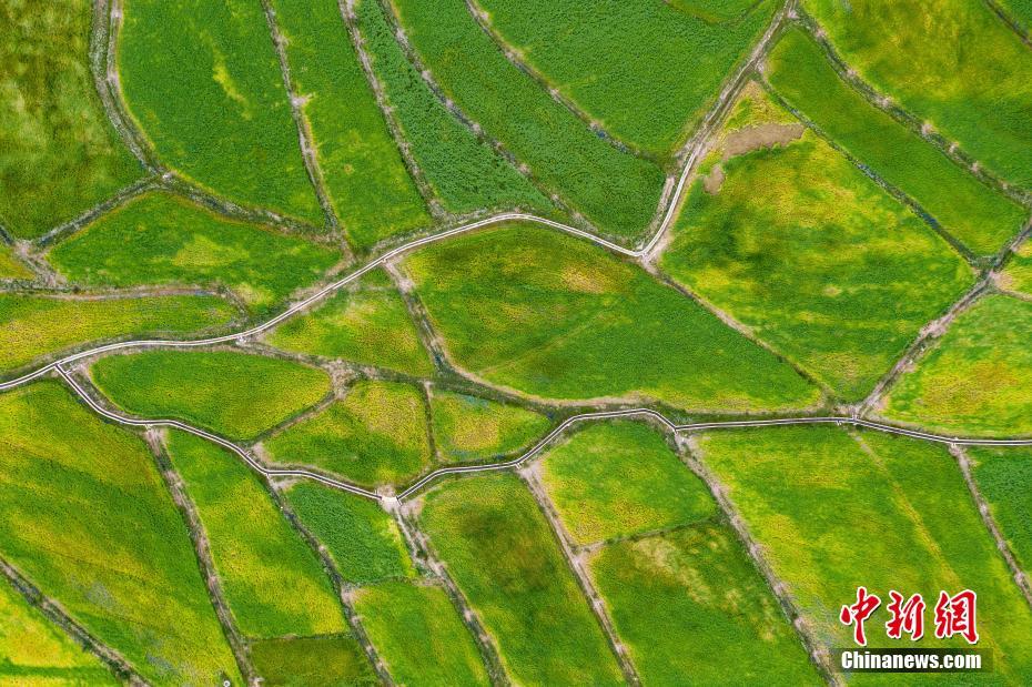 圖為7月28日,航拍洛隆縣優(yōu)質青稞生產(chǎn)基地。中新社記者 何蓬磊 攝