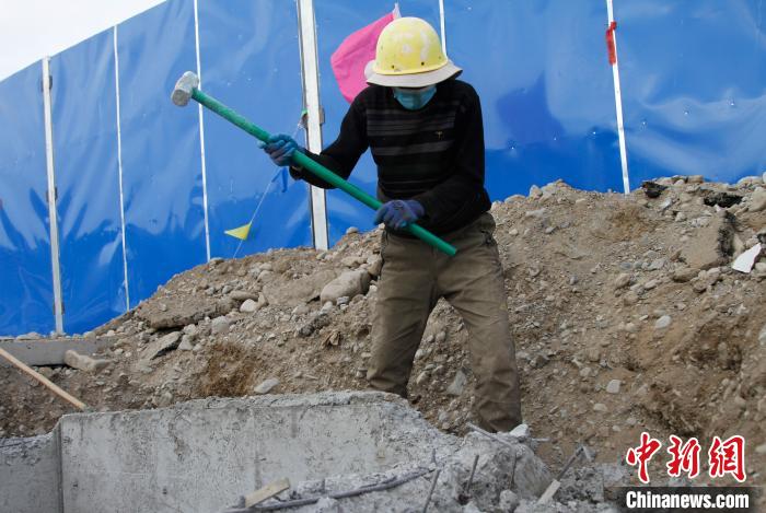 挖掘機(jī)開挖著溝渠,工人們熱火朝天在施工。10日,地處西藏阿里地區(qū)巴嘎鄉(xiāng)(塔爾欽)國(guó)際旅游小鎮(zhèn)正在施工建設(shè)。