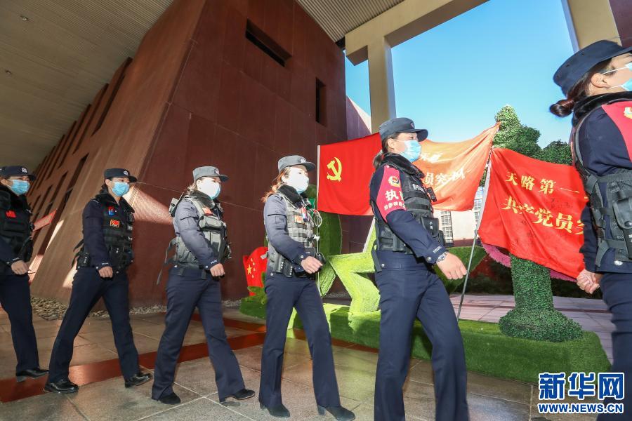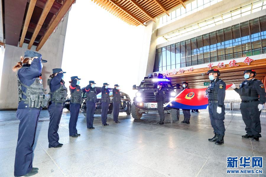 1月10日,中國(guó)人民警察節(jié)當(dāng)日,拉薩火車站派出所“女子格?;ā本M在巡邏。新華社發(fā)(胡安鵬、黃飛攝影報(bào)道)