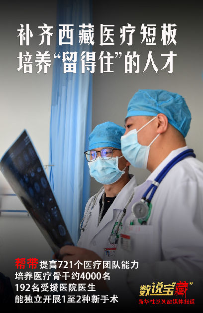 醫(yī)療人才“組團(tuán)式”援藏實(shí)施以來,共幫帶721個(gè)醫(yī)療團(tuán)隊(duì)、2031名本地醫(yī)務(wù)人員、培養(yǎng)醫(yī)療骨干約4000名,已有192名受援醫(yī)院的醫(yī)生能獨(dú)立開展1種至2種新手術(shù),實(shí)現(xiàn)了400多種較大疾病不出藏,大多數(shù)“中病”不出市(地)就能得到治療。