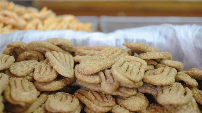 佳節(jié)臨近,拉薩大街小巷一下子“冒”出很多銷售“卡塞”的臨時店鋪和攤檔,有些街道甚至成了“卡塞”一條街??ㄈ怯妹娣郏ㄓ械募尤胨钟停┲谱鞯挠驼ㄊ称?,形狀多樣,作為藏歷新年不可或缺的年貨,卡塞是最受當?shù)乩习傩障矏鄣囊环N食品,是款待客人的美味佳肴。