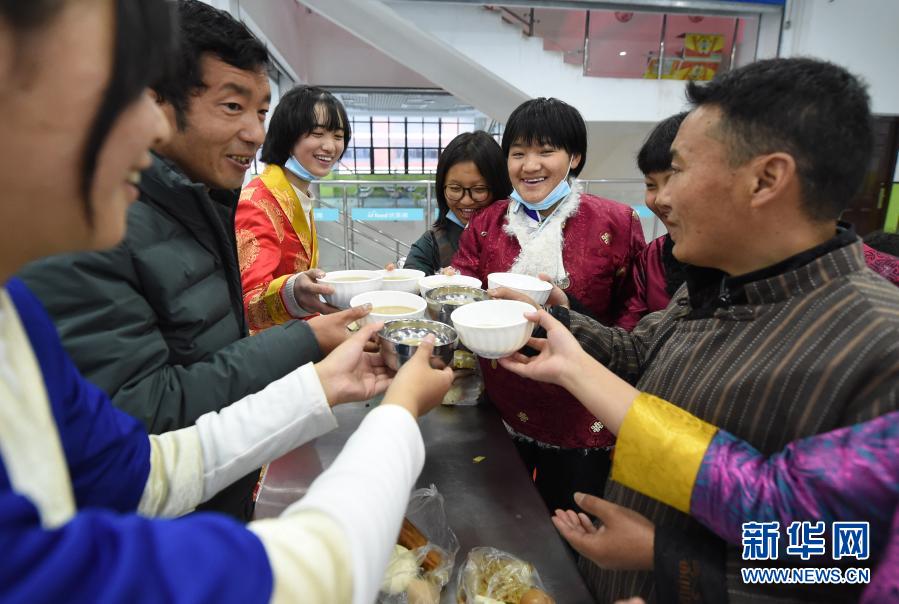 當(dāng)天是藏歷新年,也是農(nóng)歷大年初一,合肥市第三十五中學(xué)西藏班的學(xué)生們用民族特色方式歡度“雙新年”:大家自制藏式甜茶,手捧切瑪盒和哈達(dá)向老師同學(xué)們拜年。