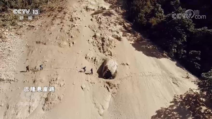 幾個小時后,搬家的隊伍來到了巴隆懸崖路。剛搶通不久的巴隆懸崖路依然時有滾石和塌方出現(xiàn),十分危險。在能保證絕對安全的情況下,大家決定等待時機,一邊搶通,一邊過人。