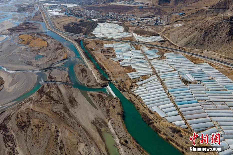 2月26日,航拍西藏拉薩河畔的蔬菜大棚,這些大棚冬季主要種植白菜、蘿卜及大蔥等蔬菜。據(jù)悉,目前西藏蔬菜種植面積已達38.75萬畝,年產(chǎn)量達77.19萬噸,夏秋兩季主要城鎮(zhèn)蔬菜自給率達八成以上,冬春自給率六成左右。西藏自治區(qū)農(nóng)業(yè)農(nóng)村廳介紹,近年來,隨著蔬菜大棚種植面積逐步擴大,加上從區(qū)外調(diào)運,西藏民眾餐桌日益豐富。中新社記者 江飛波 攝