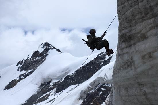 登頂稍事休息后,他們又繼續(xù)前進,展開武裝泅渡、水面射擊、牽引橫越、滑降等課目訓練。就是在這一次,他們創(chuàng)造了泅渡、橫越海拔4500米以上天湖的先例。