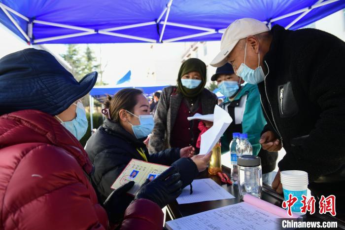 圖為用人企業(yè)代表(左)登記求職者個人信息。貢嘎來松 攝