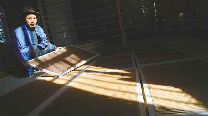 藏香技師在收拾晾曬好的藏香。