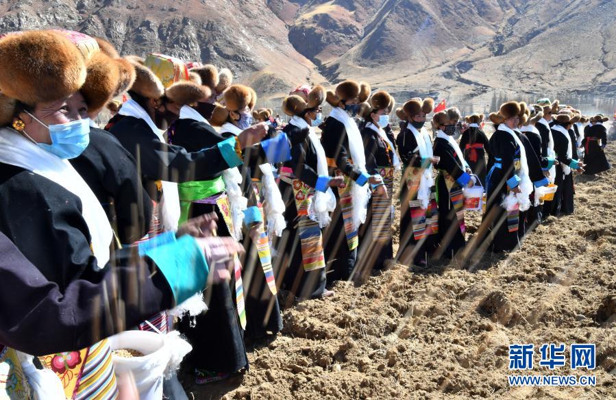 當日,位于雅魯藏布江中游的西藏拉薩市、日喀則市、山南市等地農(nóng)村啟動春耕春播,播撒春天的第一粒種子。各地農(nóng)村按著傳統(tǒng)方式,穿著盛裝,端著青稞酒,在田間地頭舉行開春儀式。
