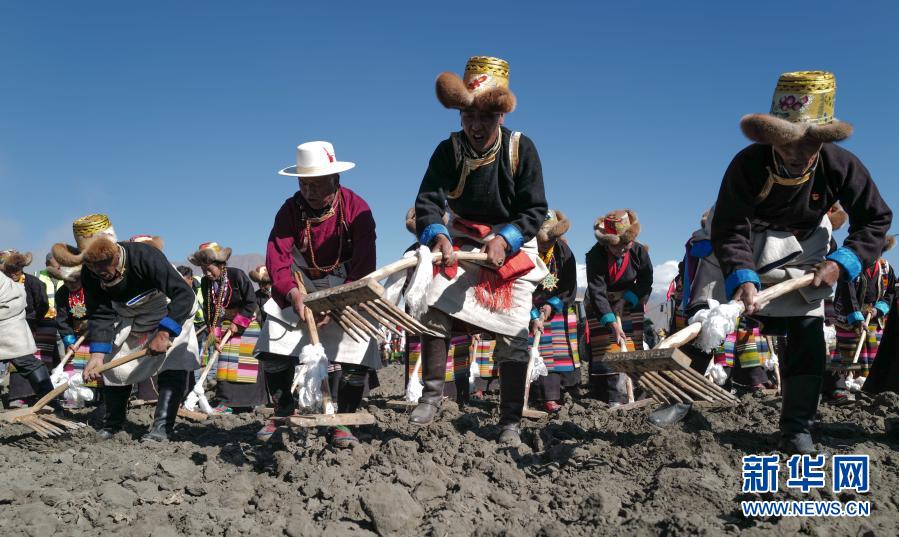 3月16日,克松社區(qū)居民在參加春耕儀式。新華社記者 普布扎西 攝