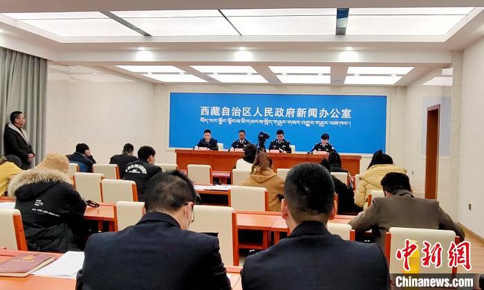 圖為西藏公安機(jī)關(guān)相關(guān)負(fù)責(zé)人發(fā)布三年以來(lái)的掃黑除惡專項(xiàng)斗爭(zhēng)情況。貢桑拉姆 攝