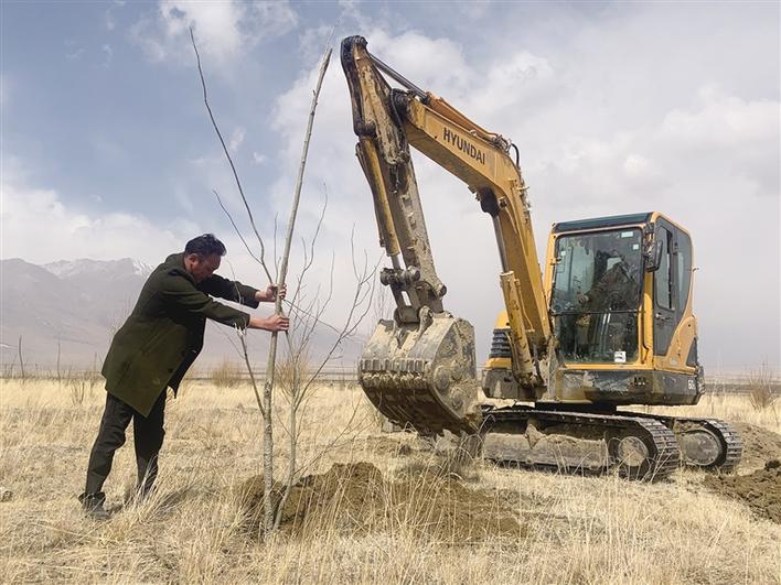 死了那么多樹,為什么還在堅(jiān)持?“那幾年,在這里隨手捧起一把黃土,還會(huì)沙化。我必須堅(jiān)持下來?!彼骼柿_布說。2015年春天,索朗羅布再次貸款40余萬(wàn)元購(gòu)買了一臺(tái)挖掘機(jī),準(zhǔn)備修建水渠和挖坑。同年3月,索朗羅布又一次獨(dú)自種樹苗,母親卓瑪央金心疼壞了,于是帶著村里姐妹們前來幫忙。不僅如此,她們還帶來了防止草原鼠啃食樹根的土方法,用塑料瓶圍著樹根包一圈,既能防止草原鼠搞破壞,還能節(jié)省成本。