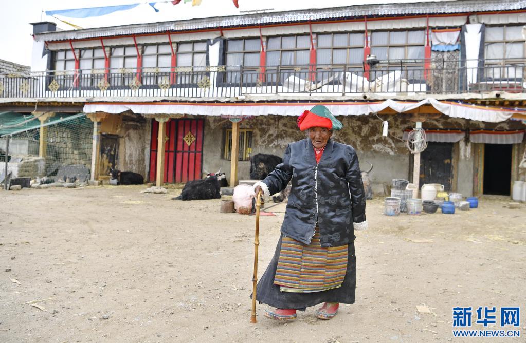 拉確老人在院子里散步(4月16日攝)。新華社記者 張汝鋒 攝
