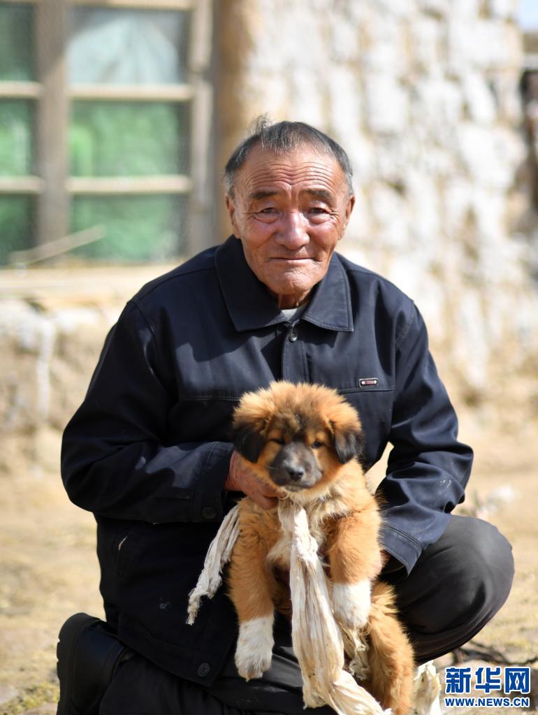 旦達和他家的小狗(4月16日攝)。新華社記者 覺果 攝