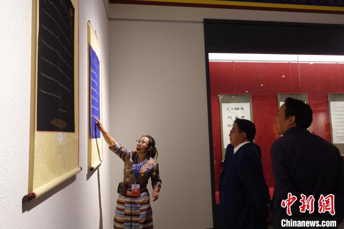5月18日,觀眾參觀山南市博物館“埃赤派”藏文書(shū)法展。冉文娟 攝
