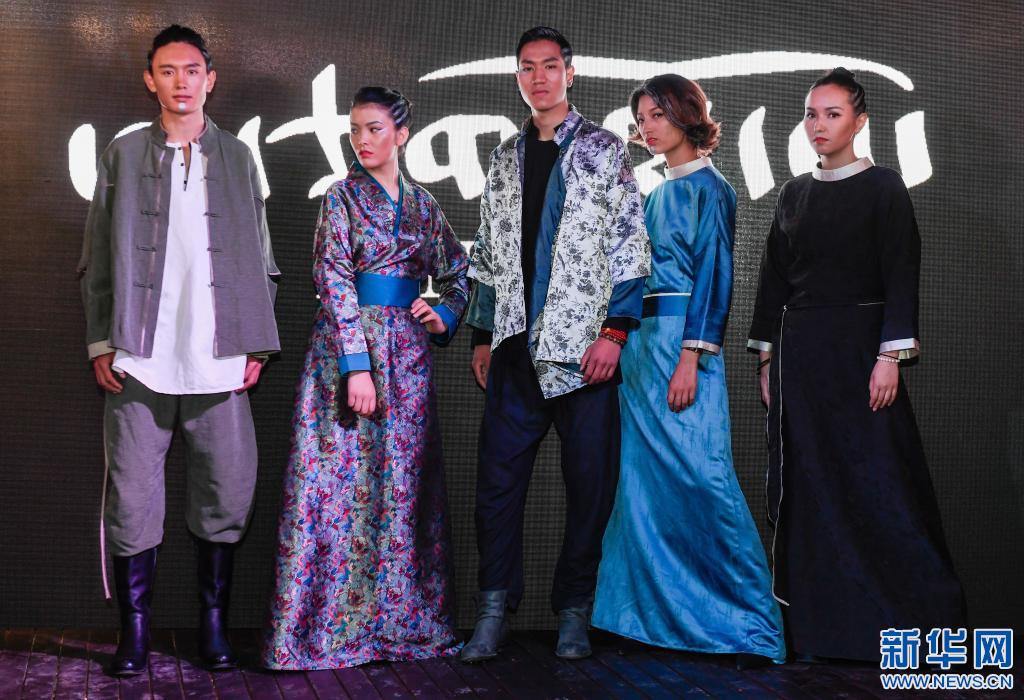 西藏時(shí)尚民族服飾品牌阿佳娜姆發(fā)布的春夏新品時(shí)裝(2018年6月10日攝)。 新華社發(fā) 劉東君 攝