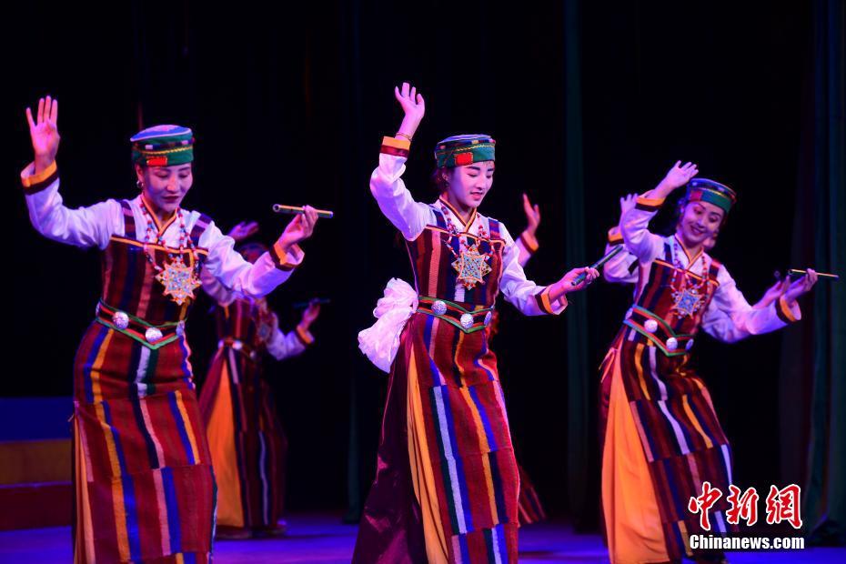 6月12日,2021年“文化和自然遺產(chǎn)日”西藏非遺展演展示系列活動(dòng)在拉薩舉行?;顒?dòng)現(xiàn)場(chǎng)融入了文藝演出、非遺展演、非遺產(chǎn)品展銷等內(nèi)容,市民游客可親身體驗(yàn)非遺產(chǎn)品的制作過程。圖為在西藏自治區(qū)群眾藝術(shù)館演出的扎念彈唱《普伊桑林貢巴》。 中新社記者 貢嘎來松 攝
