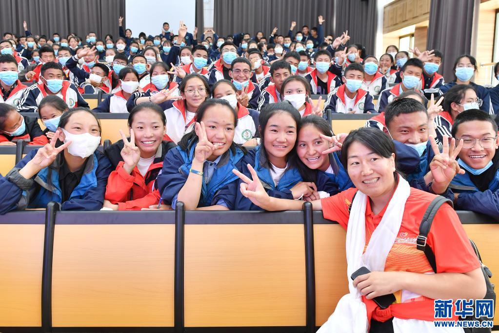 當日,高敏攜西藏和平解放以來首個競技體育世界冠軍、摔跤運動員西洛卓瑪和成功登頂七大洲最高峰并徒步到達南北極點的西藏登山運動員德慶歐珠走進拉薩市阿里高級中學。該校在校學生均來自距拉薩超過1000公里的阿里地區(qū)。由于當?shù)貧夂驐l件惡劣,交通不便,學校遷往拉薩,讓許多高海拔偏遠地區(qū)的學生享受到了更優(yōu)質的教育條件。