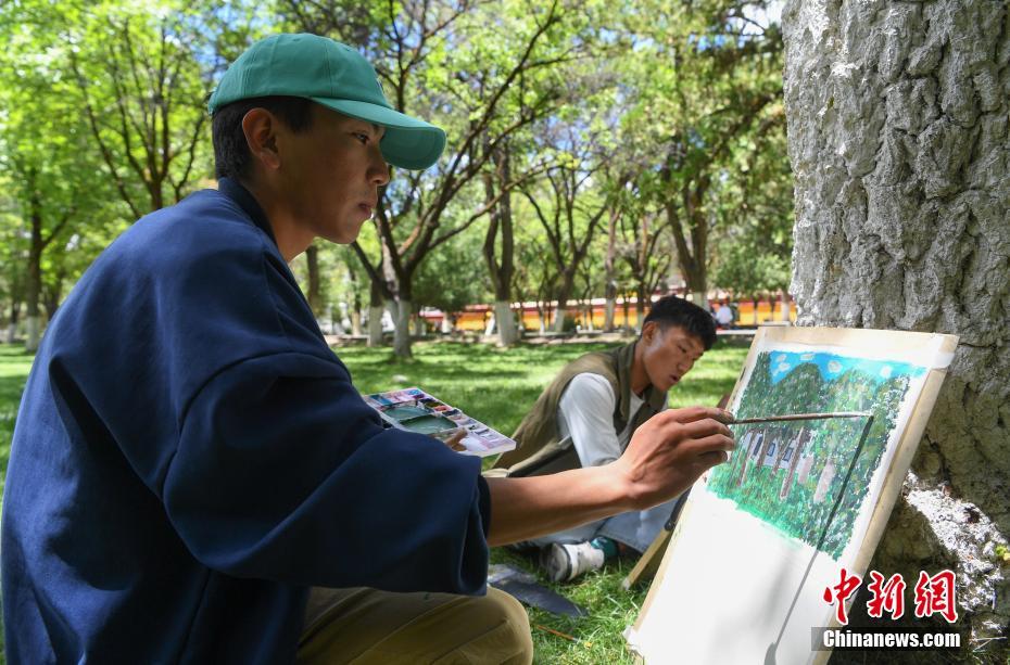 7月8日,西藏大學(xué)建筑系學(xué)生前往西藏自治區(qū)拉薩市城關(guān)區(qū)羅布林卡進行建筑美術(shù)實習(xí)。在7天的實習(xí)中,學(xué)生們將在哲蚌寺、色拉寺等地,把西藏民族特色建筑、風(fēng)景一幅幅手繪在紙上。圖為西藏大學(xué)建筑系學(xué)生手繪羅布林卡風(fēng)景。 中新社記者 貢嘎來松 攝