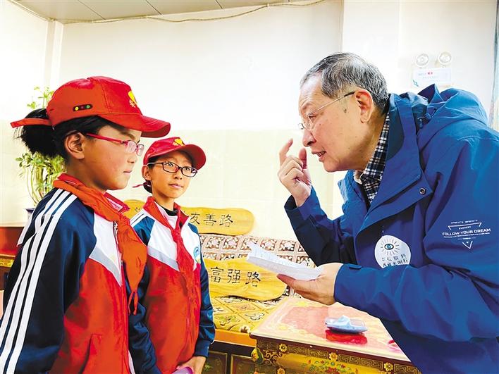 圖為濟南華視眼科醫(yī)院院長王利華為白朗縣小學(xué)生進行斜視弱視篩查。記者 陳林 攝