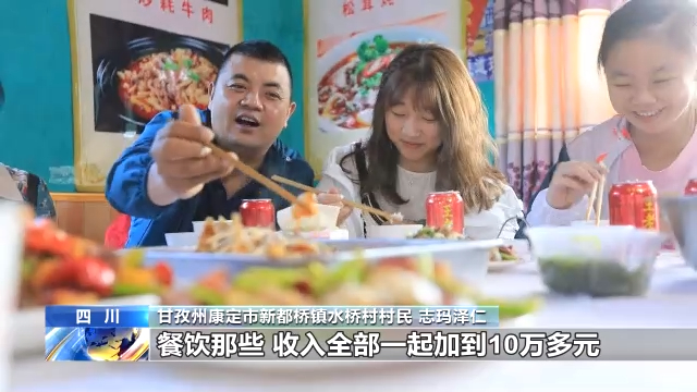 甘孜州康定市新都橋鎮(zhèn)水橋村村民 志瑪澤仁:我有八間房,一間房子80元,一天有三百四百吧,餐飲那些,全部一起加起來(lái)10萬(wàn)多。以前窮得很,旅游的(人)多,318線離我們近得很,現(xiàn)在富起來(lái)了。
