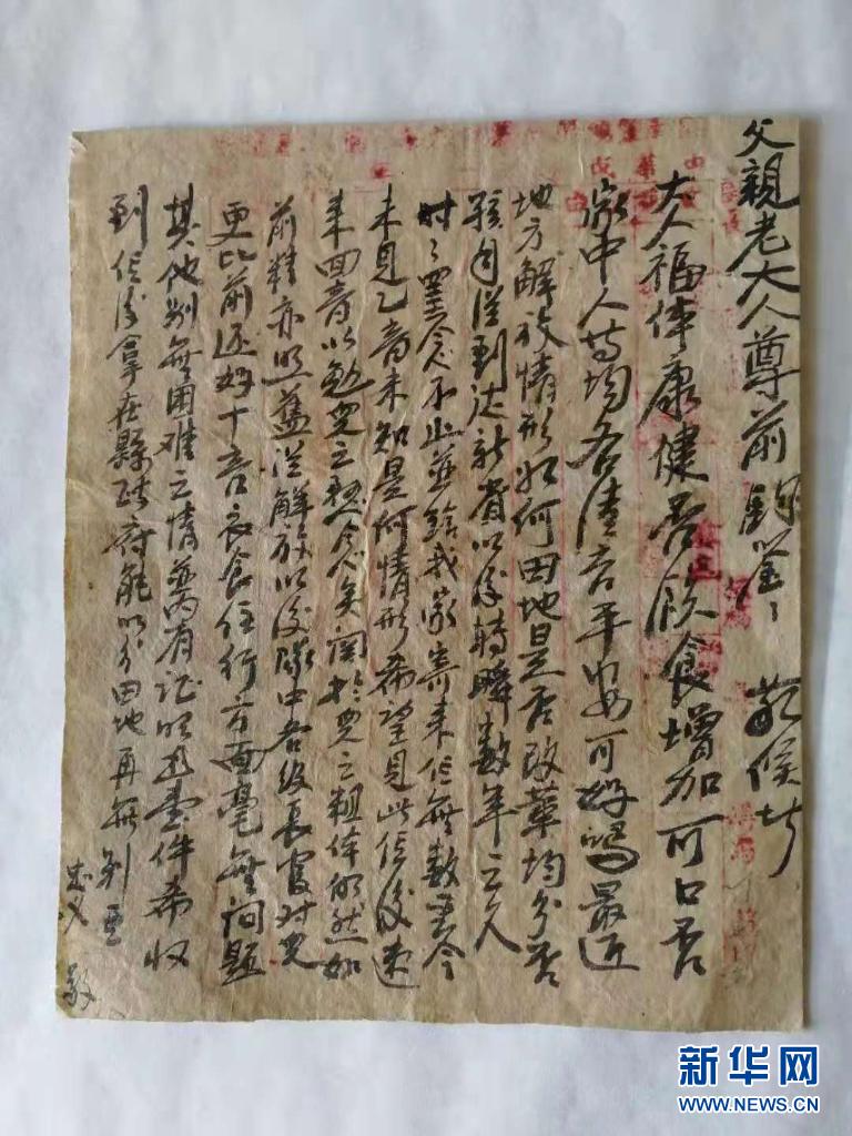 先遣連烈士陳忠義的家書(shū)。新華社發(fā)(受訪者供圖)