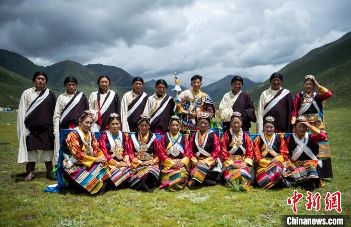 盛夏的西藏自治區(qū)拉薩市墨竹工卡縣門巴鄉(xiāng)仁多崗村草地上,28歲的尼瑪與身著盛裝的藏族牧民們跳著國家級非物質(zhì)文化遺產(chǎn)直孔普堆巴宣舞,迎接遠(yuǎn)道而來的游客,動作優(yōu)美的歌舞吸引了大家駐足觀賞,并用手機(jī)或相機(jī)記錄。
