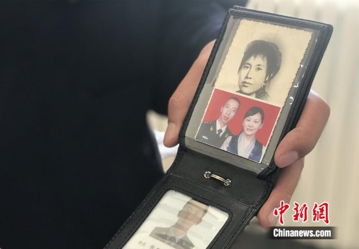 圖為張思祖隨身攜帶的證件夾中,一直放著母親年輕時(shí)的軍裝照。冉文娟