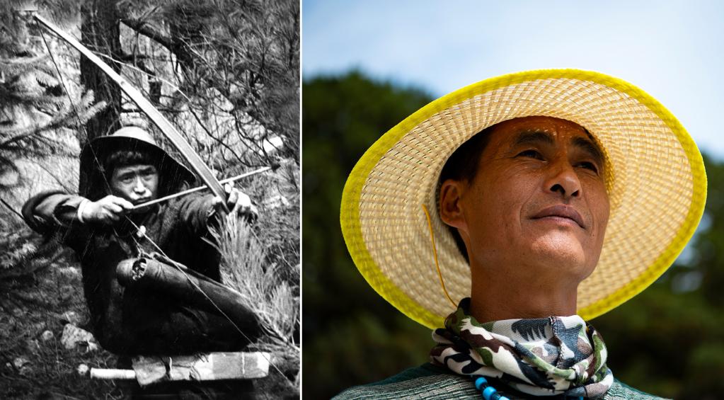 左圖是20世紀50年代瓊林村非常有名的獵手達前(資料照,新華社發(fā));右圖是瓊林村珞巴族達吉,結(jié)束打獵生涯,成為護林員(2021年6月19日攝)。新華社記者 晉美多吉 攝
