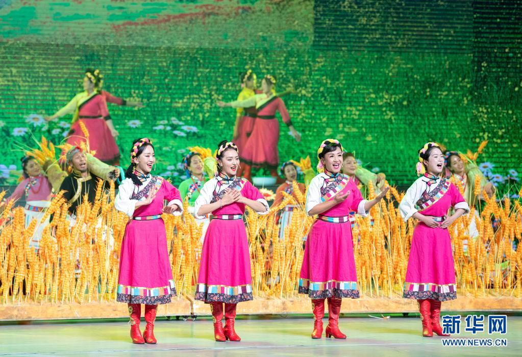 8月19日,慶祝西藏和平解放70周年文藝演出《西藏兒女心向黨》在拉薩西藏人民會堂精彩上演。新華社記者 黃敬文 攝