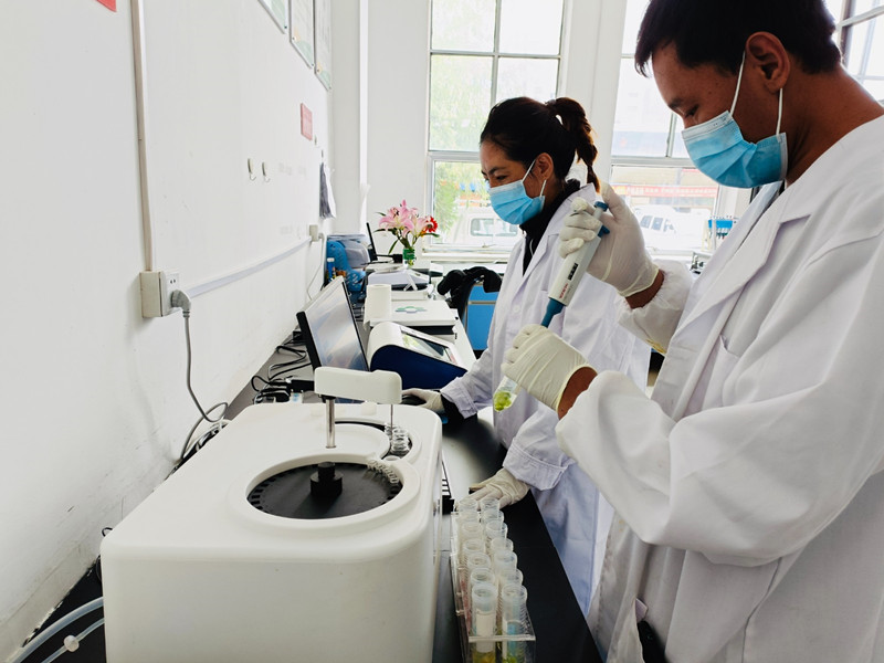 圖為西藏拉薩東嘎農(nóng)副產(chǎn)品批發(fā)市場快檢實(shí)驗(yàn)室工作人員在對該市場內(nèi)農(nóng)副產(chǎn)品進(jìn)行檢測。記者 央金 攝