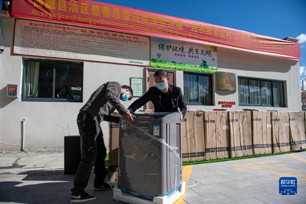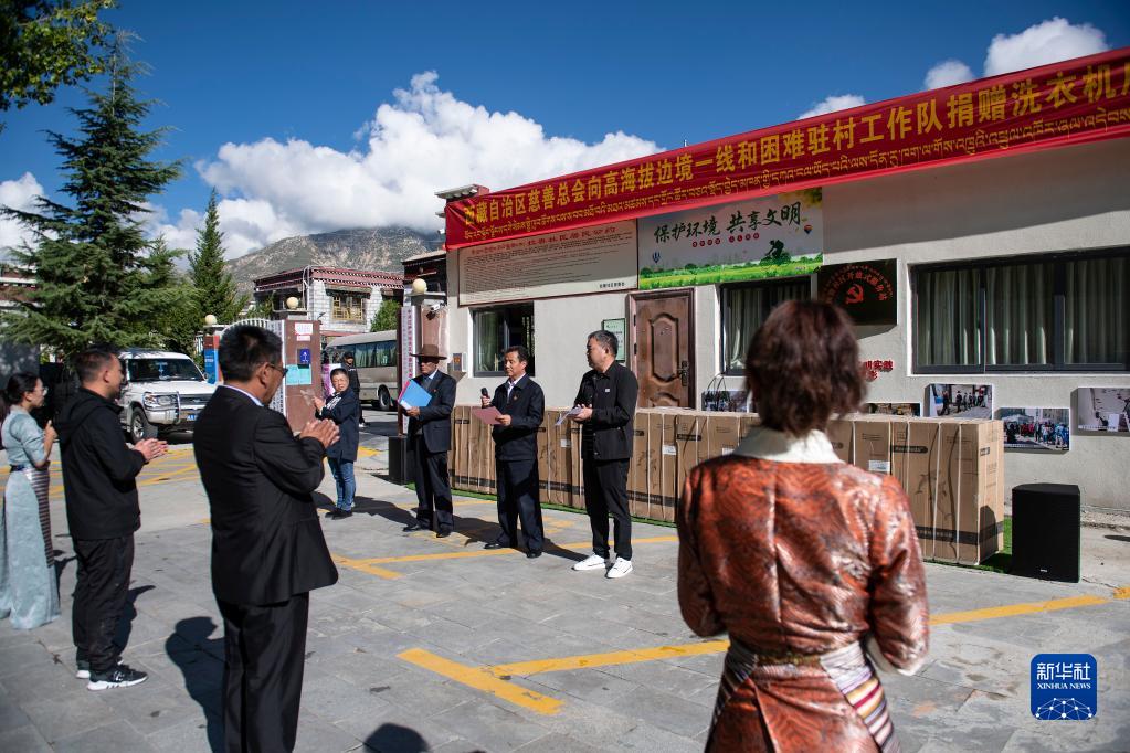 當(dāng)日,西藏自治區(qū)慈善總會攜手愛心企業(yè)在拉薩舉行捐贈儀式,向拉薩、山南、日喀則、那曲等地50個(gè)高海拔、邊境一線駐村工作隊(duì)捐贈全自動洗衣機(jī)50臺,幫助駐村隊(duì)員改善生活條件,引導(dǎo)社會慈善力量助力鄉(xiāng)村振興。