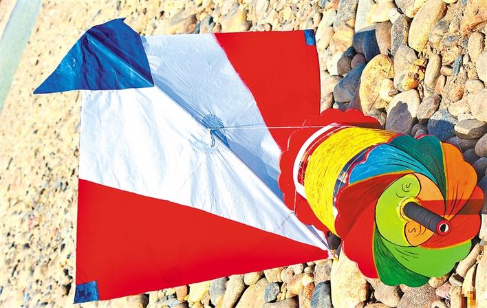 59歲的普窮制作風(fēng)箏已經(jīng)有近20年的經(jīng)驗(yàn),對(duì)風(fēng)箏器具也做了很多改良,他向記者展示攤位上自己制作的風(fēng)箏線、線軸,對(duì)比多年前的制作圖片,在實(shí)用和審美方面都有了明顯改進(jìn)。