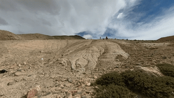 在喜馬拉雅山脈東部一個山腳下,滿臉胡須、面部黝黑、嘴唇皸裂的科考隊員王昊,指著垂直地面高達百米的沉積剖面說,從這些大型傾斜層理可以看出,數(shù)萬年前,西藏日喀則市定結縣區(qū)域內存在一個巨大的堰塞湖。