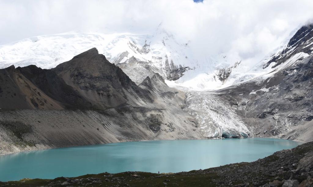 西藏日喀則市亞東縣境內,超過海拔5000米的冰川下有一個湖泊——朗錯。通過分析壩體形態(tài)特征,科考隊初步分析判斷這是一個冰川終磧體形成的堰塞湖,即冰湖。冰湖是喜馬拉雅山脈常見的堰塞湖類型之一。