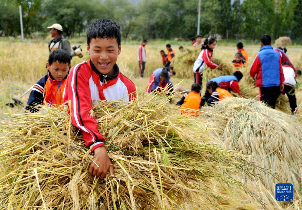 時下正值青稞成熟的季節(jié),西藏日喀則市上海實驗學(xué)校40余名師生來到日喀則市甲措雄鄉(xiāng),參與當(dāng)?shù)氐那囡崭?,把“思政課”上在青稞地里。學(xué)生們在實踐中體會勞動的艱辛,在收獲中感受勞動的快樂。