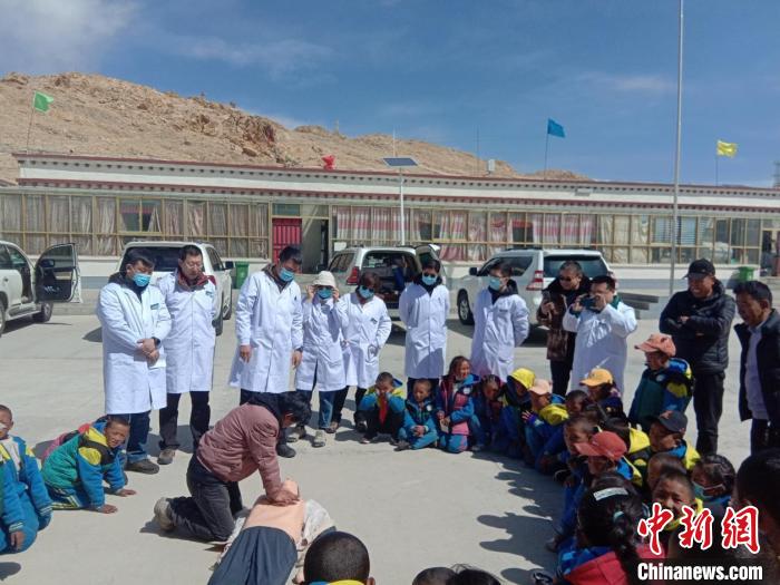 醫(yī)療隊為波絨鄉(xiāng)中心小學(xué)師生進行心肺復(fù)蘇現(xiàn)場培訓(xùn)。煙臺援藏醫(yī)療隊供圖