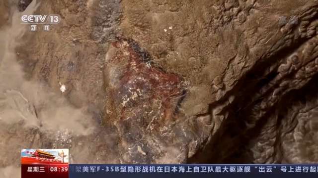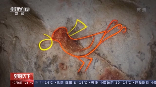 總臺(tái)記者 陳琴:現(xiàn)在我們就來到納木錯(cuò)環(huán)湖科考巖畫調(diào)查點(diǎn)的1號(hào)點(diǎn),您看到這個(gè)巖畫是由紅色的赭石這個(gè)顏料做成的,看起來特別像一只可愛的小鳥。