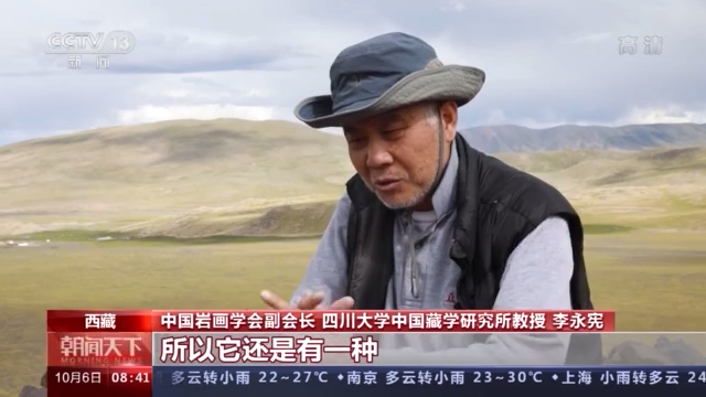 中國巖畫學(xué)會(huì)副會(huì)長、四川大學(xué)中國藏學(xué)研究所教授 李永憲:它面對(duì)這個(gè)湖泊非常開闊,然后背靠高山,所以它還是有一種就是我們藏北游牧部落比較傳統(tǒng)的一個(gè)領(lǐng)地意識(shí),在巖石上留下我們特有的印記。