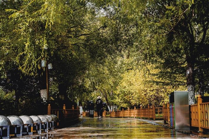 山明水凈夜來霜,數(shù)樹深紅出淺黃。進入10月,拉薩已褪去夏日的灼熱,秋風吹動著泛黃的樹葉,絲絲涼意不經(jīng)意間沁入心扉。而此時的人們,也更加樂于走出家門,用心去看看這座披上了“秋裝”的可愛城市。近日,記者來到城關(guān)區(qū)二環(huán)路濟公橋、自治區(qū)黨校、拉魯濕地一帶,看到很多人正在快樂游玩,他們或與友人并肩散步聊著家常,或掏出手機記錄著眼前的美麗秋景,或坐在長椅上,沉醉于一本有趣的書,個個無比愜意地享受著當下靜謐安逸的秋日時光……