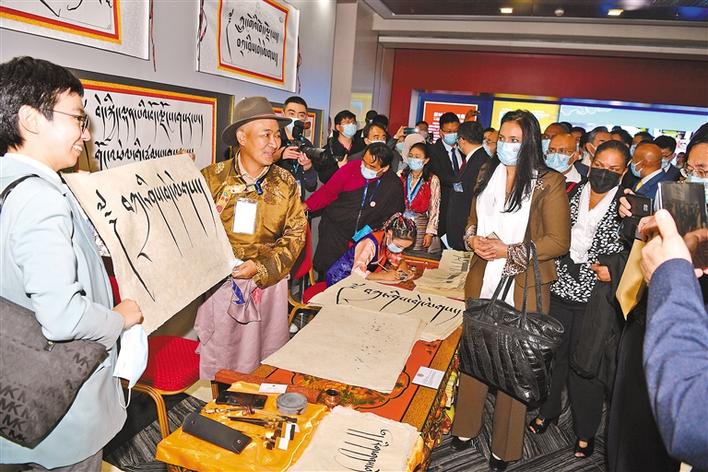 一幅幅精美絕倫的照片、一幀幀生動直觀的視頻畫面、一個個獨特壯觀的實物模型、一次次活潑有趣的互動展示,全面、立體、生動地向中外嘉賓展示了西藏和平解放70年來經(jīng)濟社會發(fā)展的歷史性成就,展示了中國共產(chǎn)黨團結(jié)帶領(lǐng)西藏各族人民創(chuàng)造了彪炳千秋、利澤萬代、亙古未有的歷史功績。