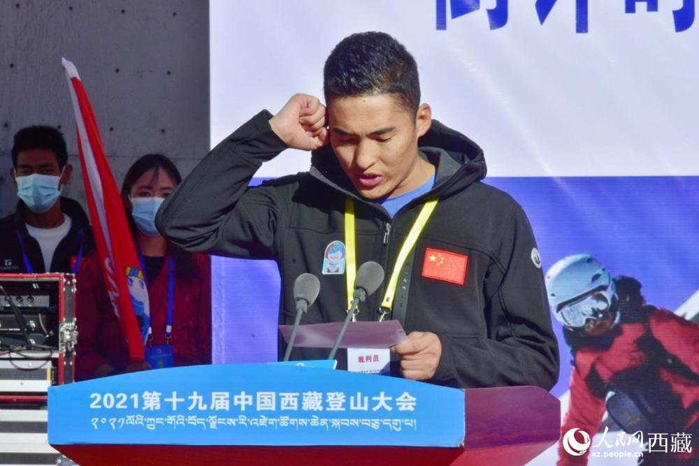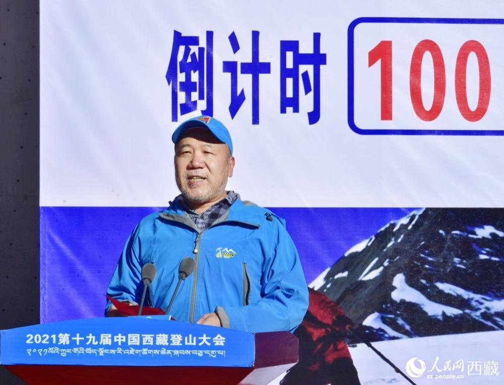 中國(guó)登山隊(duì)隊(duì)長(zhǎng)王勇峰致辭。 人民網(wǎng) 李海霞攝