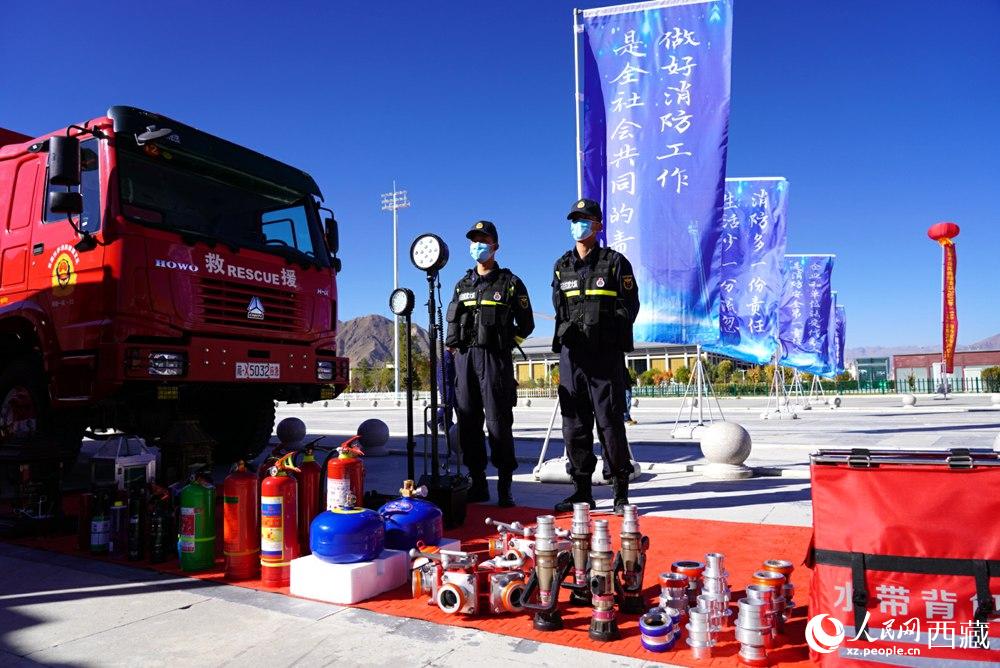 拉薩市2021年“119”消防宣傳月啟動(dòng)儀式現(xiàn)場(chǎng)。人民網(wǎng) 次仁羅布攝