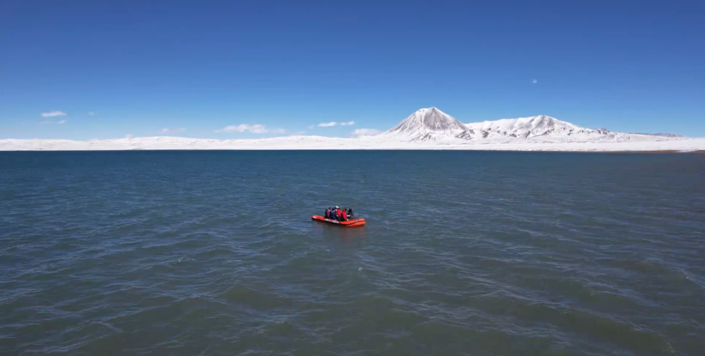 大家好,我是新華社記者董琳娜,我現在是在青藏高原格拉丹東的雀莫錯上。這里的海拔是5000米左右,現在戶外的溫度是零下10攝氏度左右??蒲腥藛T是要采雀莫錯的水樣。我們在12點之前要把水樣采完,否則風浪會非常大,給我們的工作帶來非常大的困難。